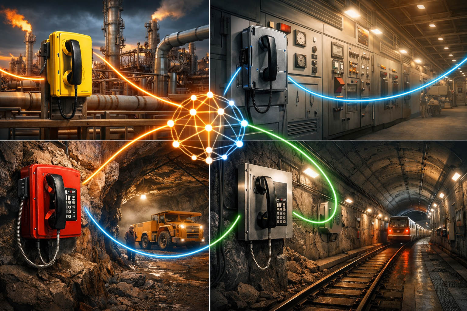 工业领域的通信需求与普通办公场景存在本质差异,办公场景以日常沟通、轻量协作为核心,对环境适应性、耐用性、抗干扰性要求极低;而工业场景以生产调度、应急报修、安全管控、跨区域协同为核心,通信终端需要全年无间断运行,且要抵御各类极端工况的侵蚀。多数企业初期采用普通办公电话替代工业通信设备,往往会出现频繁故障、通信中断、适配性差等问题,直接影响生产效率与作业安全,这也是企业亟需专属工业通信方案的核心原因。