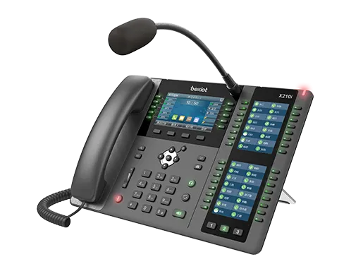 · 两个3.5英寸副DSS屏的一体化简洁设计,无需配置安装扩展板。 · 通过三个页面切换按钮,侧面显示屏可以设置多达96个DSS键(32个物理键),主屏可设置10个DSS键,因此X210i共可支持106个DSS键,用于BLF/快速拨号、组播功能等。