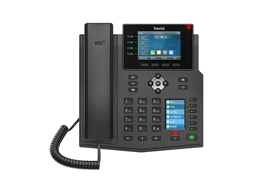 拥有3.5英寸480x320彩色显示屏和2.4英寸320x240彩色副屏,贝克BX5U话机外观商务优雅,更加便于操作。 ·配备LED指示灯的主屏幕侧键,对应屏幕显示SIP线路;为您提供更加便捷顺畅的操作指引。 ·配备LED指示灯的副屏侧键,支持自定义可编程键,适应不同应用场景的需求定义。