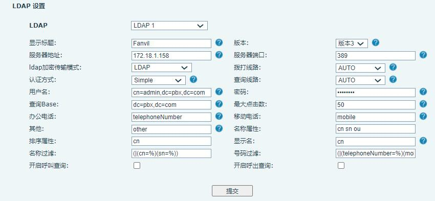⑦配置访问 LDAP 服务器的用户名和密码,如果认证方式为 NONE,则此处可以为空。