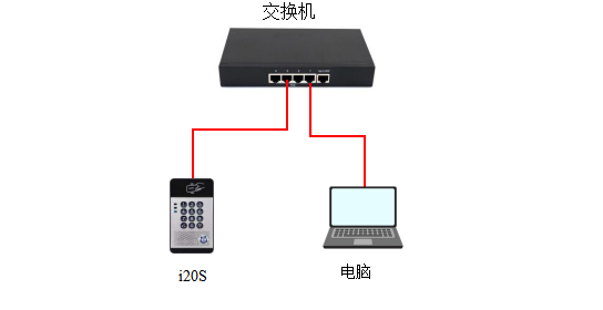 将 i20S 连接交换机,并将电脑连接在与设备同一个交换机下,保证电脑跟交换机之间的网络互相连通,连接示意图如图 1 所示。