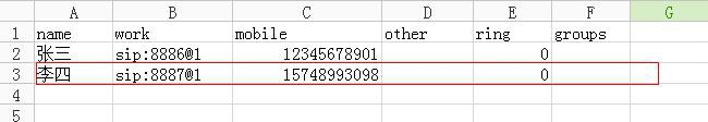在 groups 填写是分组,注意如果要编辑分组,此分组必须是话机上原来就有的分组,如:friend, work, home 等等。